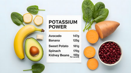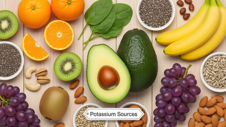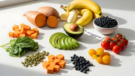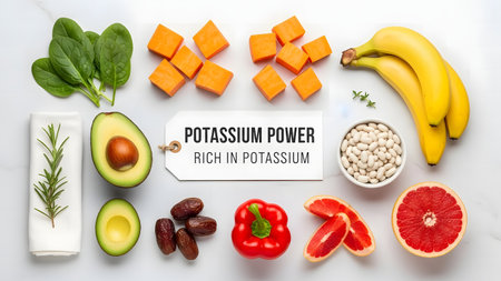 Healthy eating containing natural potassium, vitamin K, minerals and dietary fiber