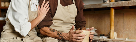 cropped couple finds joy in pottery as they shape clay together, sharing quality moments, banner