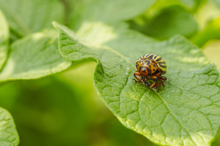 Unwanted guest: Colorado potato beetle on potato leaf.