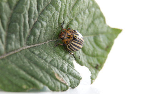 Close-up of Colorado bug on a leaf as a eco bio agriculture concept without pesticides