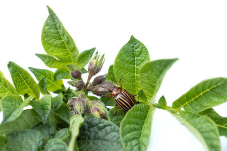 Colorado beetle on a Potato plant. Plant vegetables. Farming concept. High quality photo