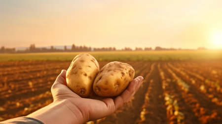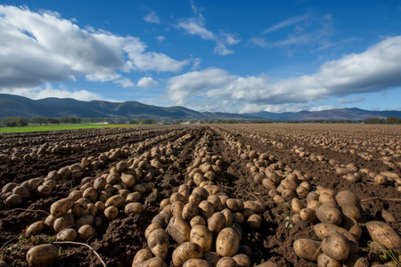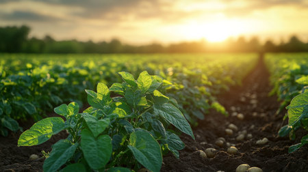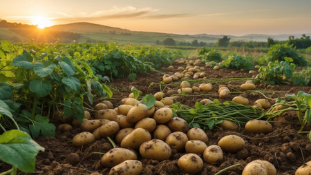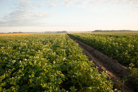 Golden Harvest: Serene Morning in the Countryside Potato Field in Northern Europe