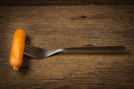 Hot potato with big steam on two steel forks on a rustic wooden table