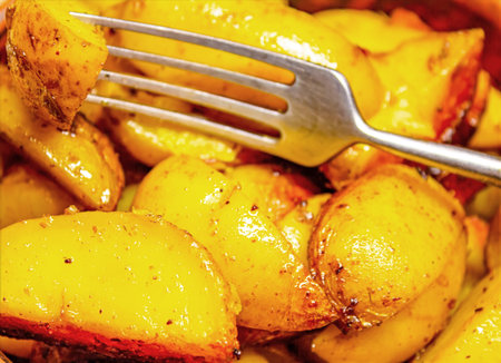 Potato. Roasted potatoes. American potatoes with salt pepper and cumin. Roasted potato wedges delicious crispy.