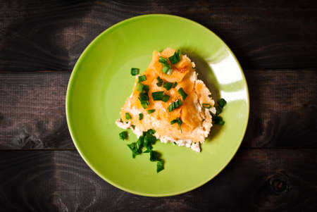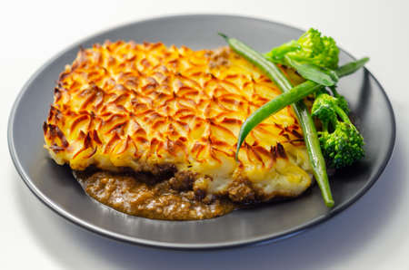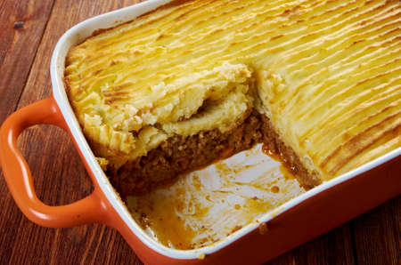 delicious home made Shepherd's pie - traditional British home-cooking.baked mashed potatoes and ground beef with vegetables