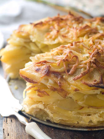 Pate aux pommes de terre speciality of the Limousin and the Allier . main ingredients are potato slices and crème fraîche, which are used to fill a puff pastry crust.