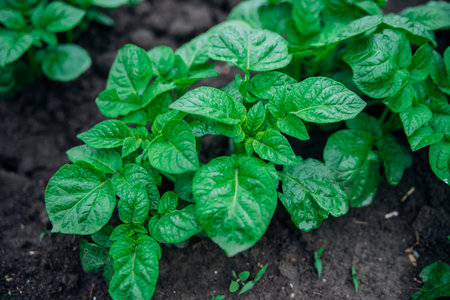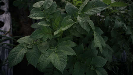 Green potato leaves in a vegetable garden