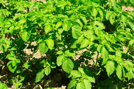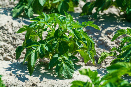 Potatoes on the field. Growing organic vegetables in the garden.