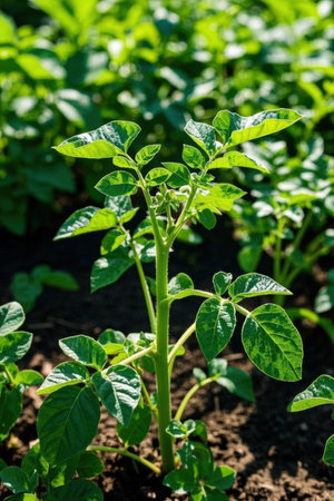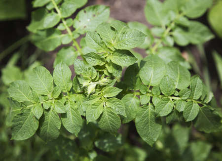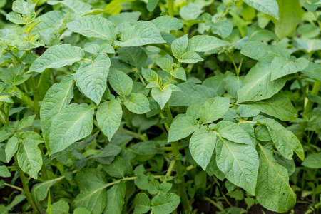 Potato plants growing in the field. Solanum tuberosum