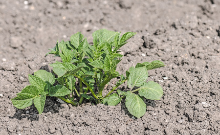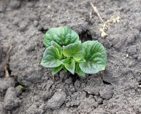 growing potato. baby plant in soil