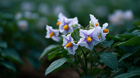 potato flowers blooming in the field