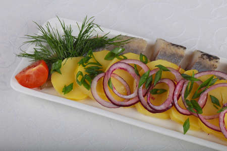 herring fish fillets with potato and onion