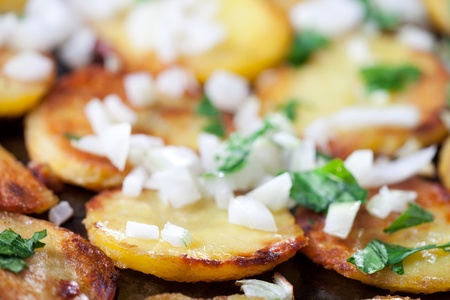 Roasted Potatoes in a Pan with Onions