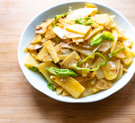 Stir Fried Potato with Garlic and Chilli - Thai food style