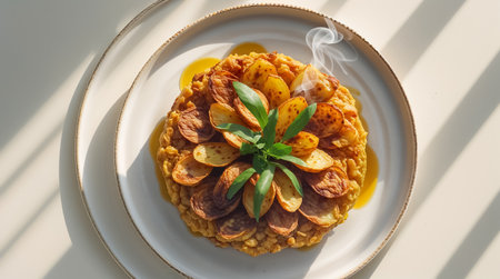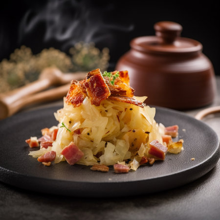 Indulge in the hearty flavors of Andorras Trinxat - a rustic dish featuring a delicious mixture of cabbage, potatoes, and bacon. This authentic Andorran dish is perfect for a cozy dinner, with the tender potatoes and crispy bacon complementing the fresh and vibrant colors of the cabbage. Savor the unique flavors of this dish, enhanced by traditional Andorran ingredients such as garlic and parsley.