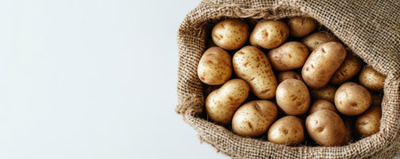 A sack of potatoes resting on a white background, ideal for food and agriculture themes