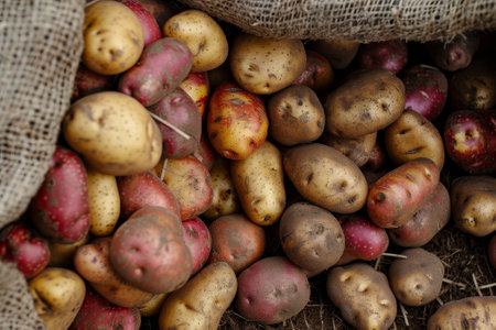Close-up of freshly harvested potato tubers