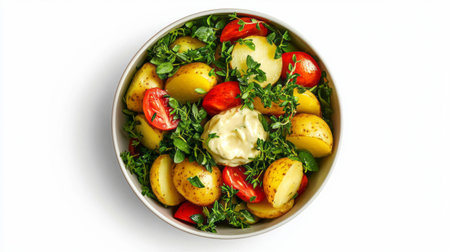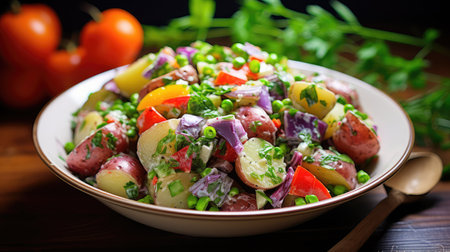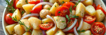 Fresh potato and tomato salad with herbs as a delightful summer dish