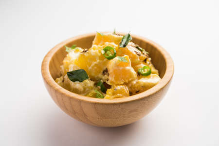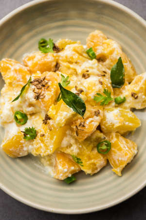 Red Pumpkin or Kaddu ka Raita known as Lal Bhoplyache Bharit in Marathi, food originating from Maharashtra, India
