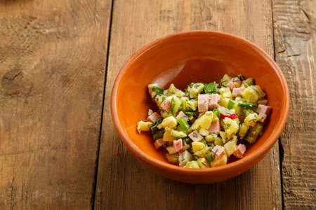 Diet concept. Potato salad with vegetables.