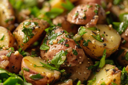 Vibrant potato salad seasoned with herbs and green onion