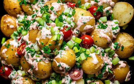 Indulge in a vibrant creamy potato salad garnished with fresh herbs, perfect for summer meals. Ideal for picnics and gatherings, this dish combines flavors and textures beautifully.