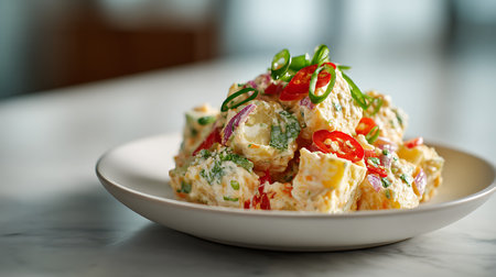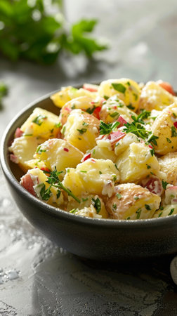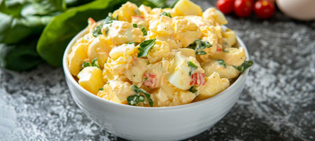 Capture the essence of Potato Salad in a mouthwatering food photography shot