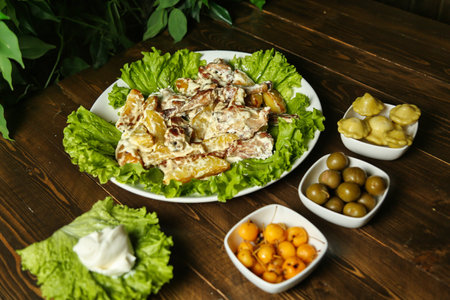 Turkish style food; potato salad, potatoes salad. generative ai