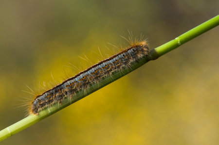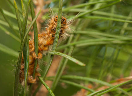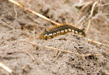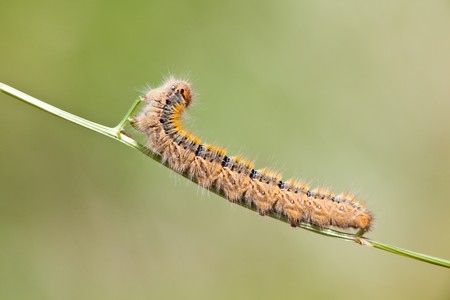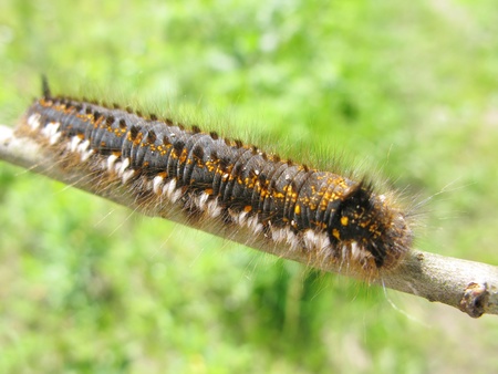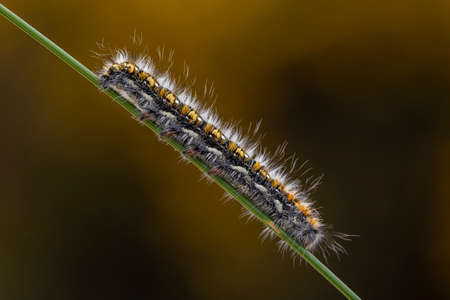 Hairy caterpillar of butterfly silkworm crawl on grass