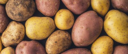 Raw potatoes background. Fresh potatoes close-up. Potatoes background.
