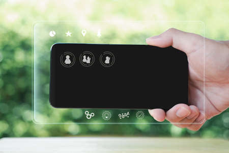 Taking photo on smart phone with nature background, Madeira island, Portugal