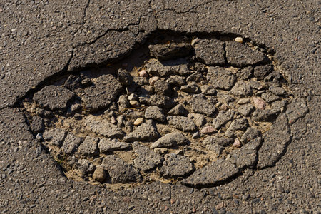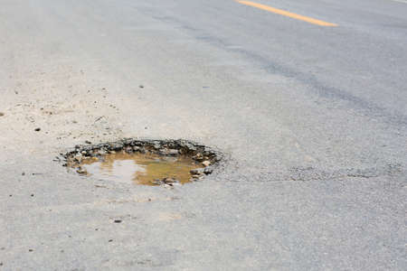 Transport movement concept.Pit in the asphalt on the road.