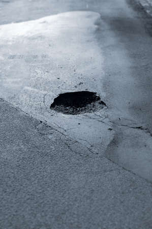 Deep hole on an asphalt road close-up. High quality photo