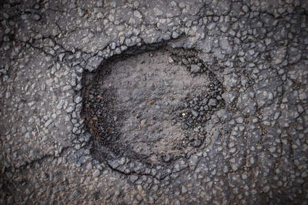damaged surface on the asphalt road