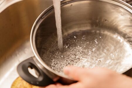 pour water into a saucepan close-up