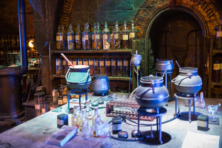 Leavesden, London, UK - 1 March 2016: display of Professor Snape class room. Decorations for the Harry Potter film in the Warner Brothers Studio