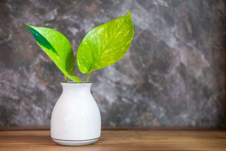 House plant Devil ivy, Golden Pothos, Hunter’s-robe green leaf decorate on table indoor on blur background