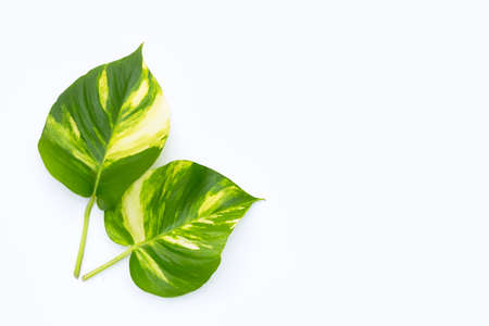 Golden pothos or devil's ivy leaves on white background.