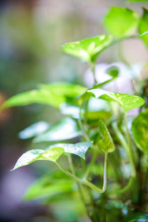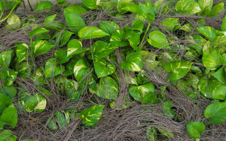 Background of Epipremnum Aureum tree in the garden in the morning.