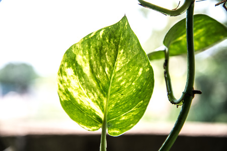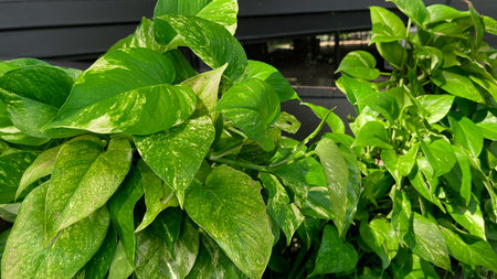 Epipremnum aureum popular ornamental houseplant leaf closeup