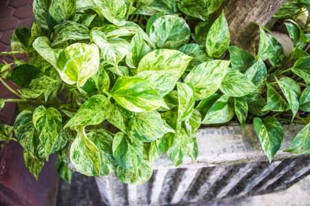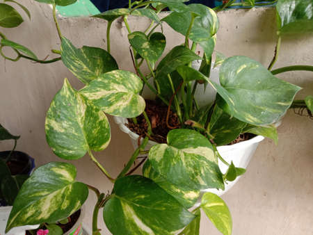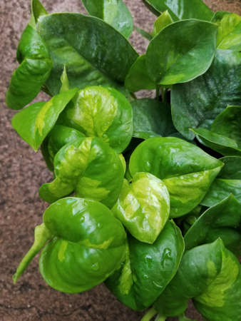 Devils Ivy, Golden Pothos or Hunters Robe or Epipremnum aureum or Araceae or bicolor plant