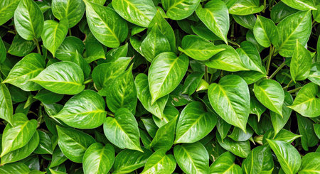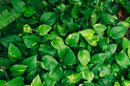 Epipremnum aureum or golden pothos plant. Abstract tropical green leaf textured background, large foliage, background for green nature.