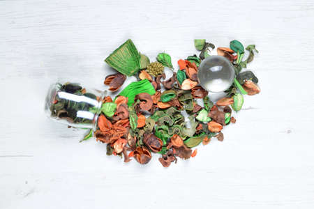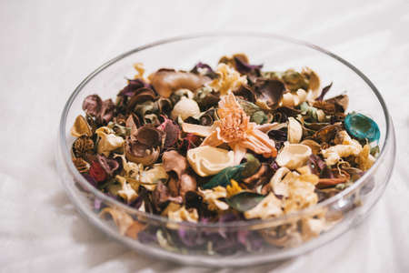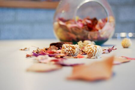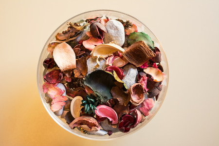 Pot pourri, dried flowers with glass