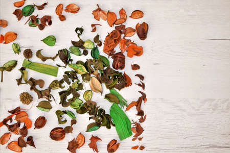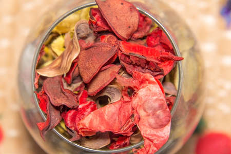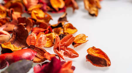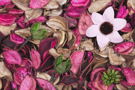Red and white dry real natural flower leaf as decoration and background. Nice scent, parfumerie, smell, color.