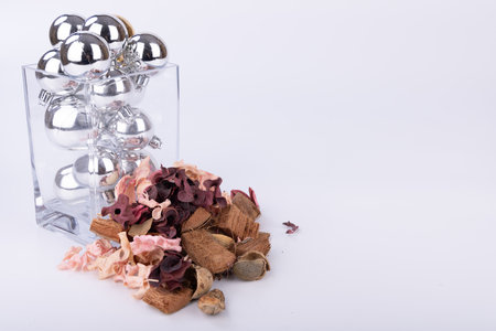 Potpourri in a glass isolated on a white background.