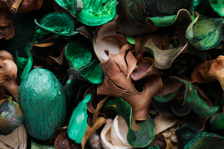 Close-up photo of colorful scented potpourri on a golden metallic background (selective focus).