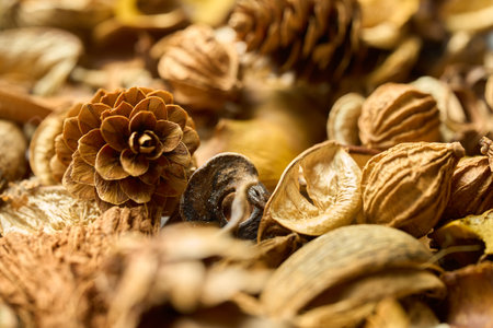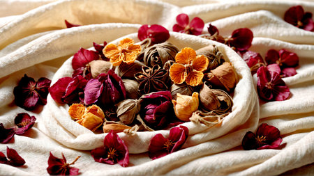 Aromatic potpourri of dried plants and spices for autumn decoration generated by artificial intelligence