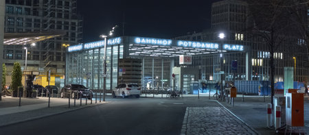BERLIN, GERMANY - SEPTEMBER 22, 2017: Entrance to the Potsdamerplatz Railway Station (Bahnhof) on Potsdamer square. Potsdam Square is an important public square and traffic intersection in the centre of Berlin
