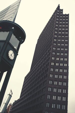 BERLIN, GERMANY - May 21, 2022; Architectural city buildings ultra-modern architectural high-rise buildings Potsdamer Platz, modern town square May 21, 2022 Berlin Germany.