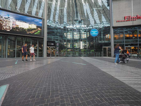 BERLIN, GERMANY - JULY 2015: The Potsdamer Platz is one of the most important places of Berlin. It is located in the Mitte district and is an attraction for tourists from around the world.